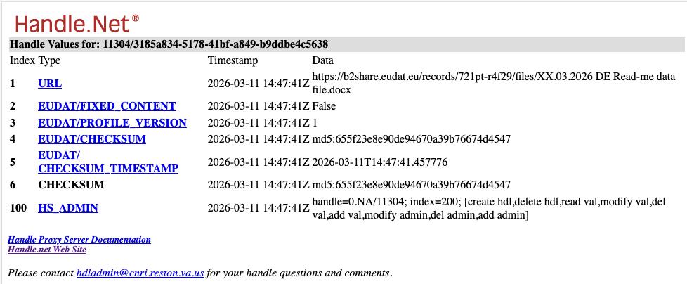 Because the Handle record can be updated whenever the underlying resource moves, the identifier itself remains stable. This is the same principle described in the previous chapter: the PID stays the same, only the target information changes, ensuring long‑term access even as systems evolve.